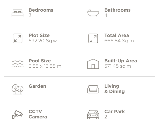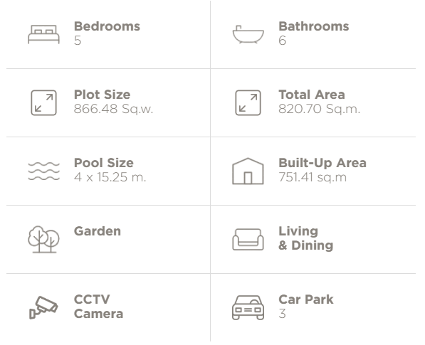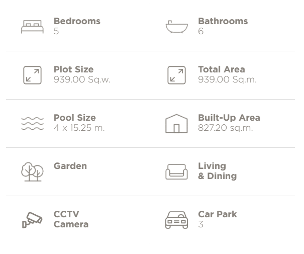 Lavish Estates comes with 13 two-story luxury pool villas with functional designs, luxury finishes and cutting-edge technology. Each villa, designed with fully functional, lots of usable space for storage, living and flexibility, features 3 – 5 bedrooms with large walk-in closets, en-suite bathrooms with smart toilets, European & Asian kitchens, extra long pool & deck length with an automated pool monitoring system, extra large space for parking, Smart home capabilities with facial recognition door entry and eco-friendly with green-living oasis, large roadways and a beautifully curated neighborhood plan.