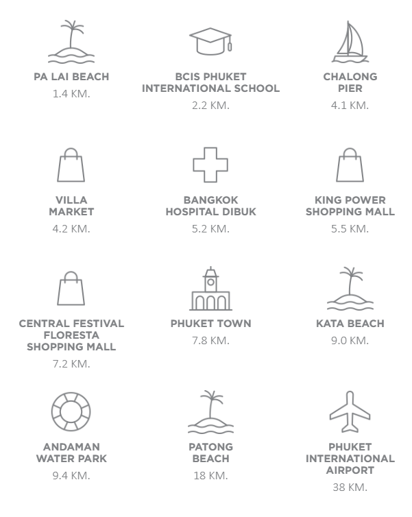 Lavish Estates is located in a prime area of Chalong sitting in the southern portion of the Phuket Province. Chalong is an urban-commercial bay area that is surrounded by restaurants, seafood, mountain, activities, and beaches.